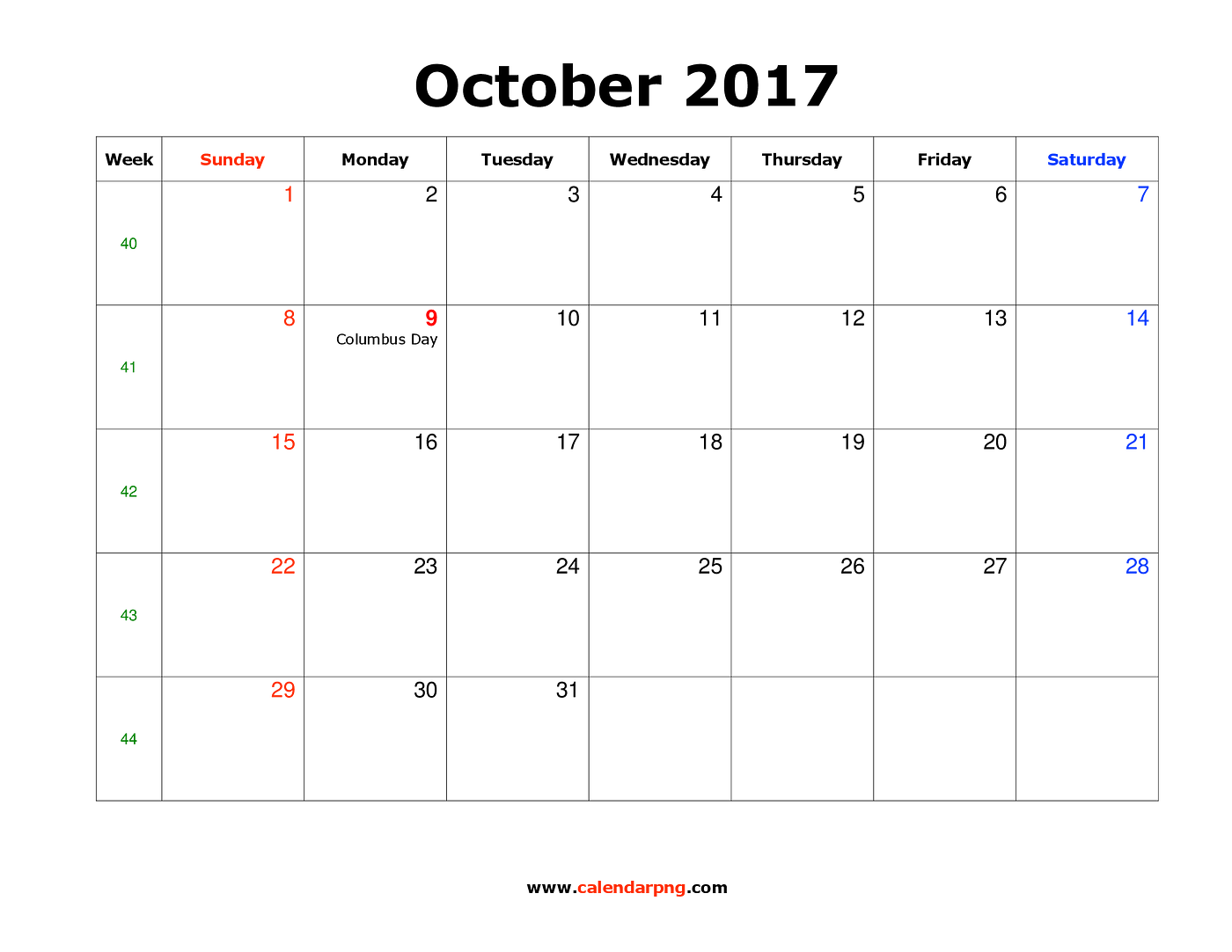 October 2017 Calendar Png By Huy Tran Medium